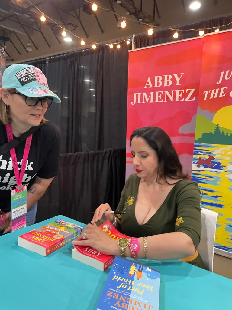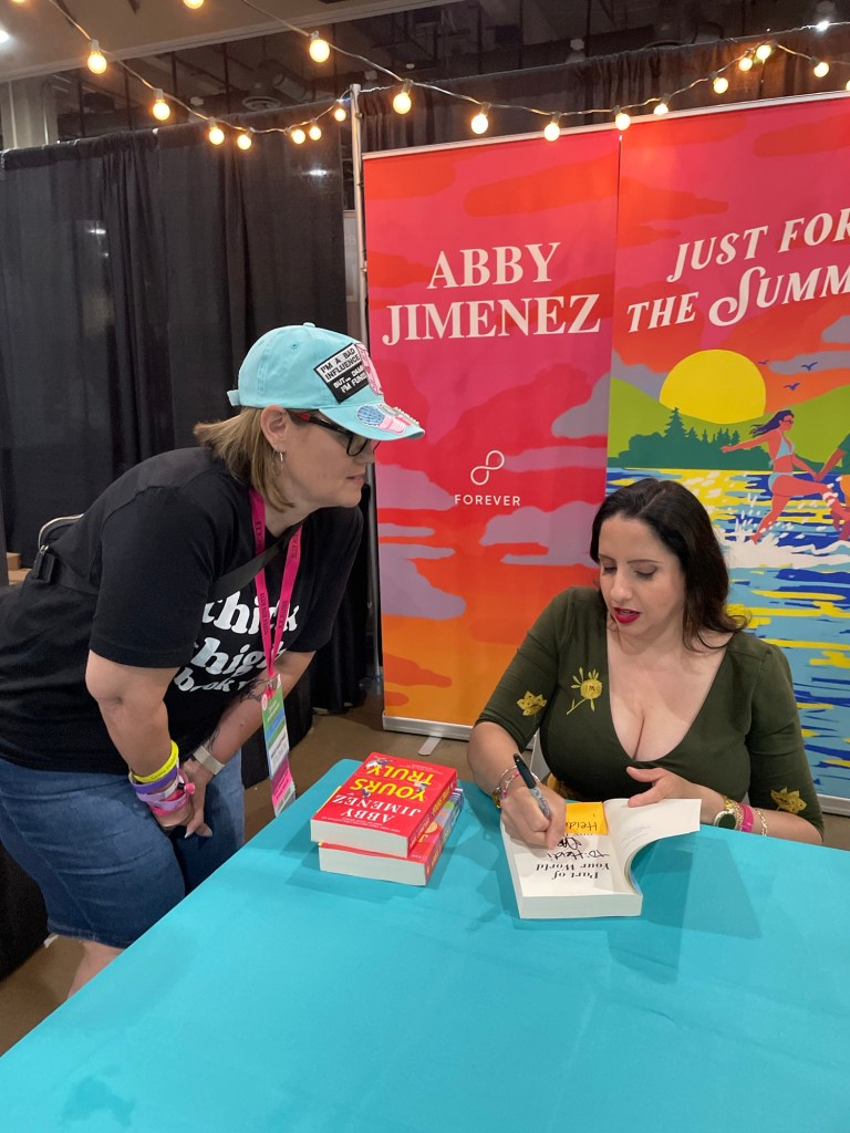 Abby Jimenez is truly my unicorn🦄 author. My best friend pointed her out before the panels started at Book Bonanza. I hesitated to approach her, but my friend encouraged me, saying that’s why she was there. I introduced myself and forgot everything I wanted to say to her. The next day, at the signing, I told her that I was so excited meeting her the day before that I totally forgot to share with her that I really loved the video she posted about signing her book for a reader traveling in the airport. Abby was so sweet and listened to me as I rambled on. She then shared her own experiences about that day. She literally made my entire Book Bonanza experience unforgettable! Thank you, Abby!